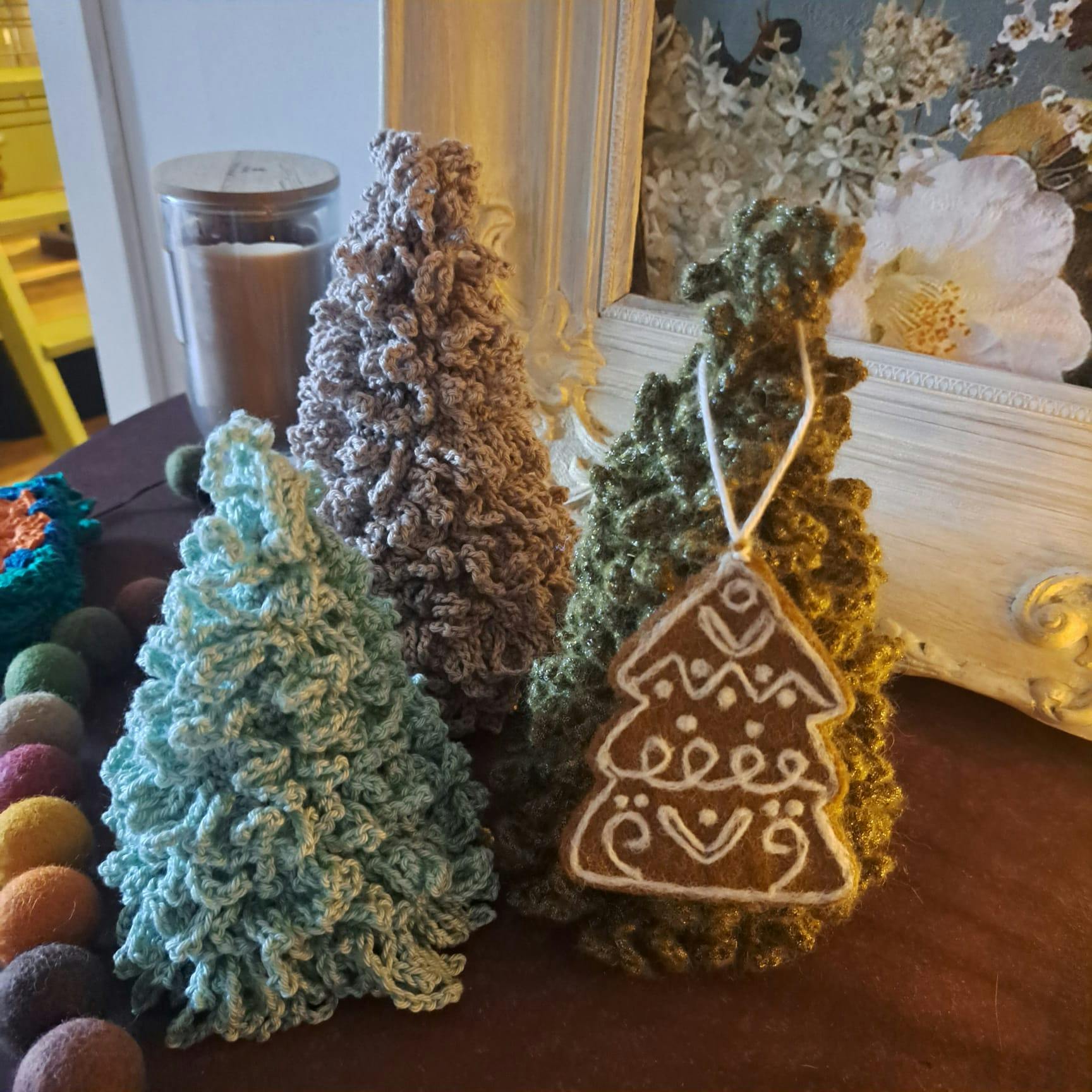 Wat gaan we doen? We haken kerstbomen met losse slierten, die de naalden van de bomen vormen. Een klein beetje haakervaring is handig maar niet verplicht.