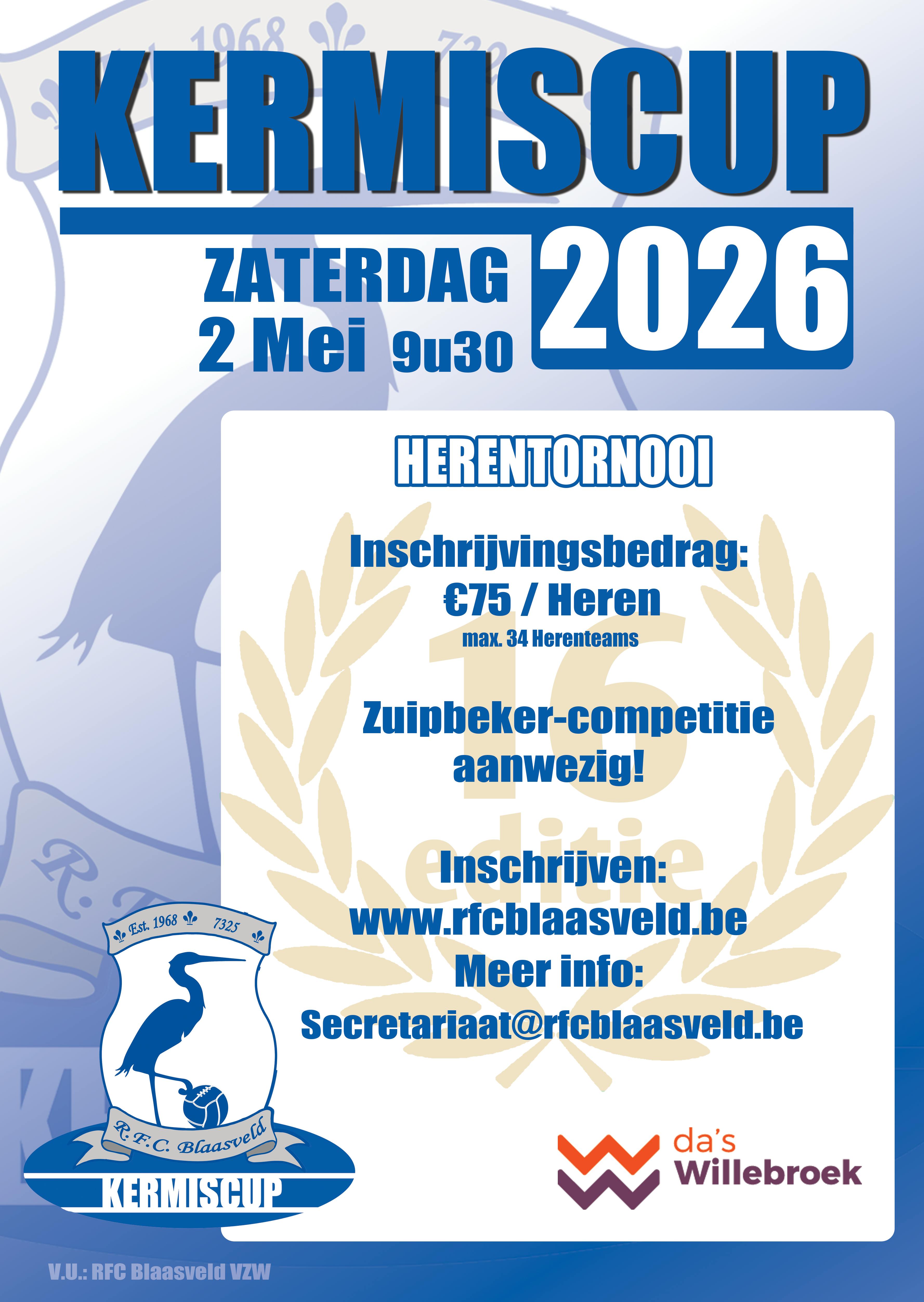 Op zaterdag 2 mei 2026 is het opnieuw zover: de Kermiscup strijkt neer op de terreinen van RFC Blaasveld!