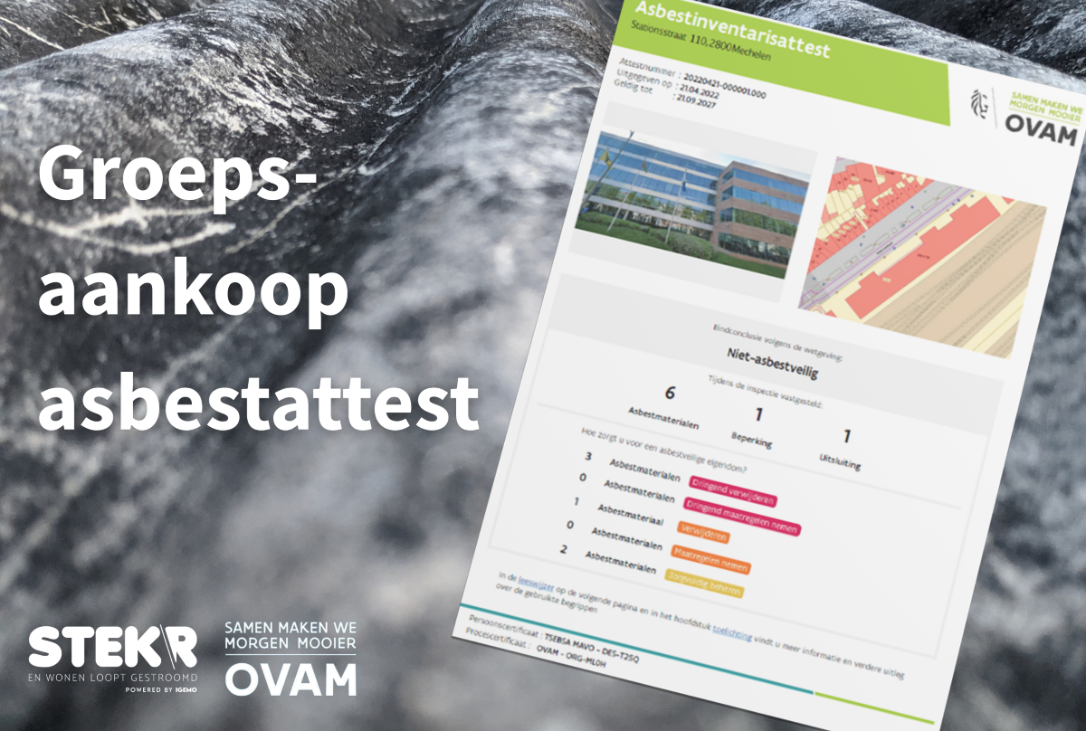 Asbest kan in duizenden toepassingen voorkomen en is schadelijk wanneer de vezels worden ingeademd. Voor woningen en gebouwen van vóór 2001 is een asbestattest verplicht bij verkoop, en vanaf 2032 moet elk van deze gebouwen zo’n attest hebben. Dankzij de groepsaankoop van Stekr kan je dit nu eenvoudig én betaalbaar laten uitvoeren.
