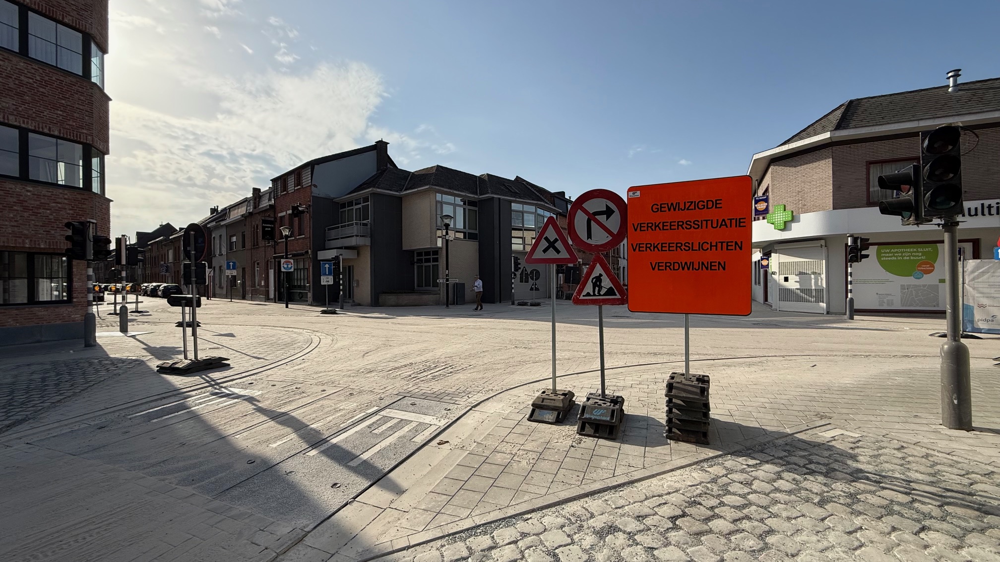 Ook op maandag 5 mei gaat het vernieuwde kruispunt van de Tisseltsesteenweg met de Overwinningsstraat opnieuw open. Dit wordt een kruispunt zonder verkeerslichten. De oude lichten worden binnenkort verwijderd.