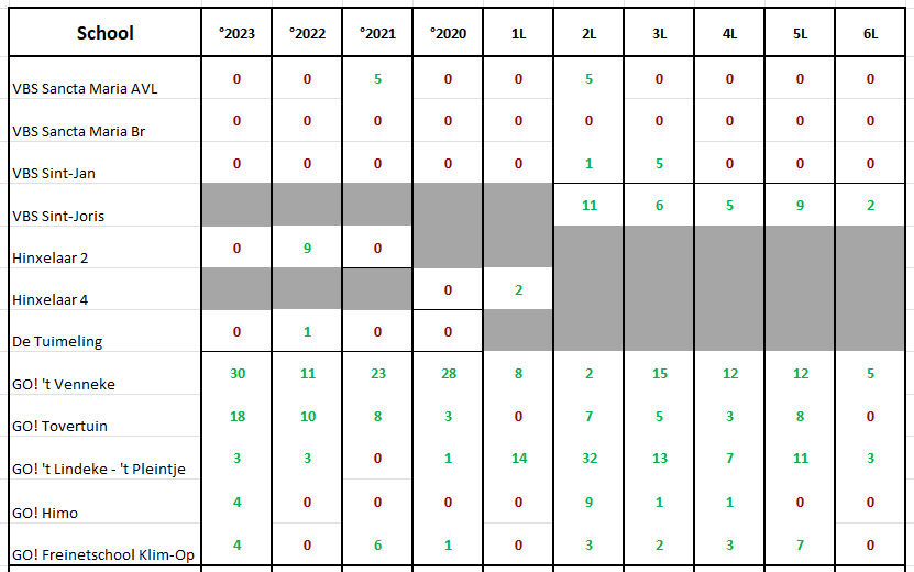 Vrije plaatsen in de Willebroekse basisscholen (situatie op 27 augustus 2025):