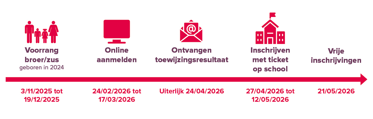 • De school informeert je hoe de inschrijvingen georganiseerd worden.